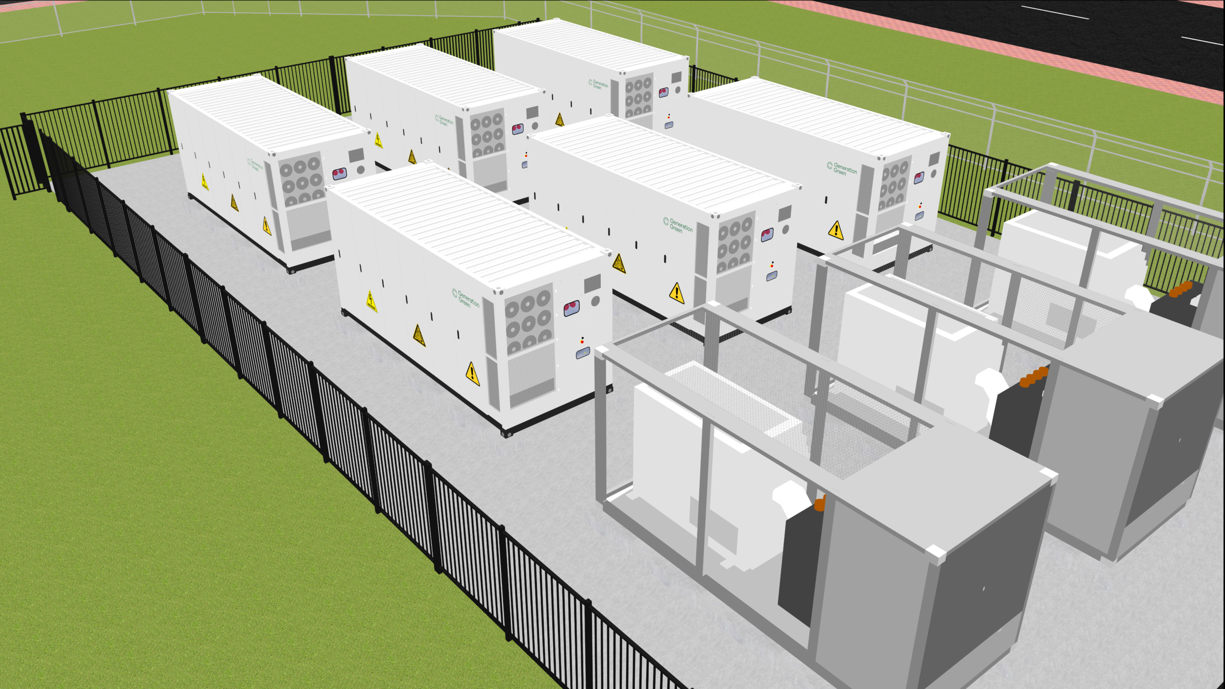 En el emplazamiento principal se instalarán seis contenedores de baterías con una capacidad total de almacenamiento de 30 MWh, en combinación con tres patines de media tensión. Estos patines de media tensión proporcionan una conexión segura y estable entre los contenedores de baterías y la red eléctrica. Permiten enviar grandes cantidades de energía dentro y fuera de la red de forma controlada, proporcionando así un enlace esencial para la participación en el mercado a gran escala.