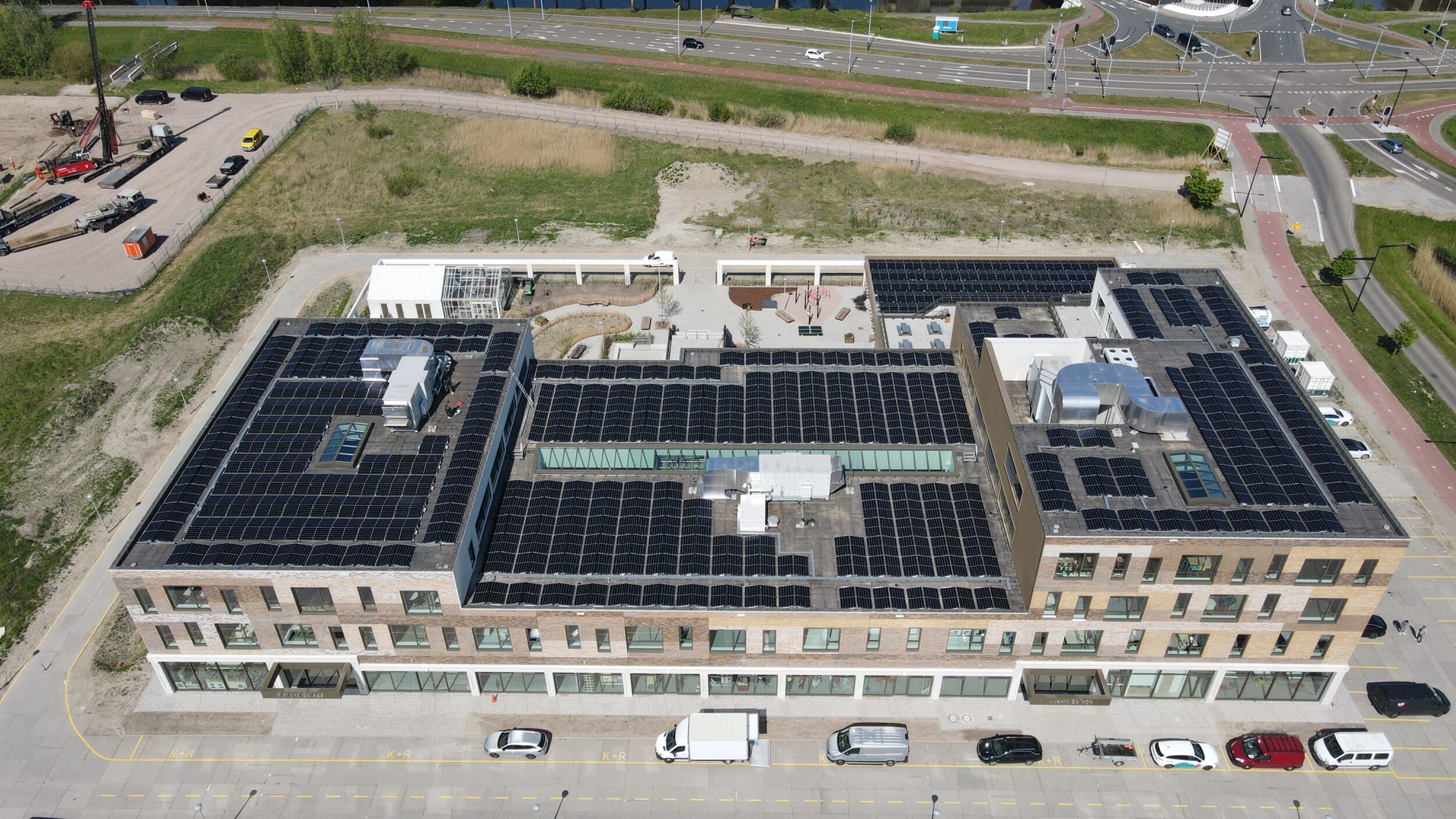 Met 823 zonnepanelen en een opgewekte energie van 365.700 kWh per jaar, leverden we in opdracht van InnQ Installaties B.V. een belangrijke bijdrage aan de verduurzaming van het onderwijs. Het resultaat? Een school die niet alleen vooruitstrevend is in zijn onderwijsaanpak, maar ook in zijn energieverbruik.