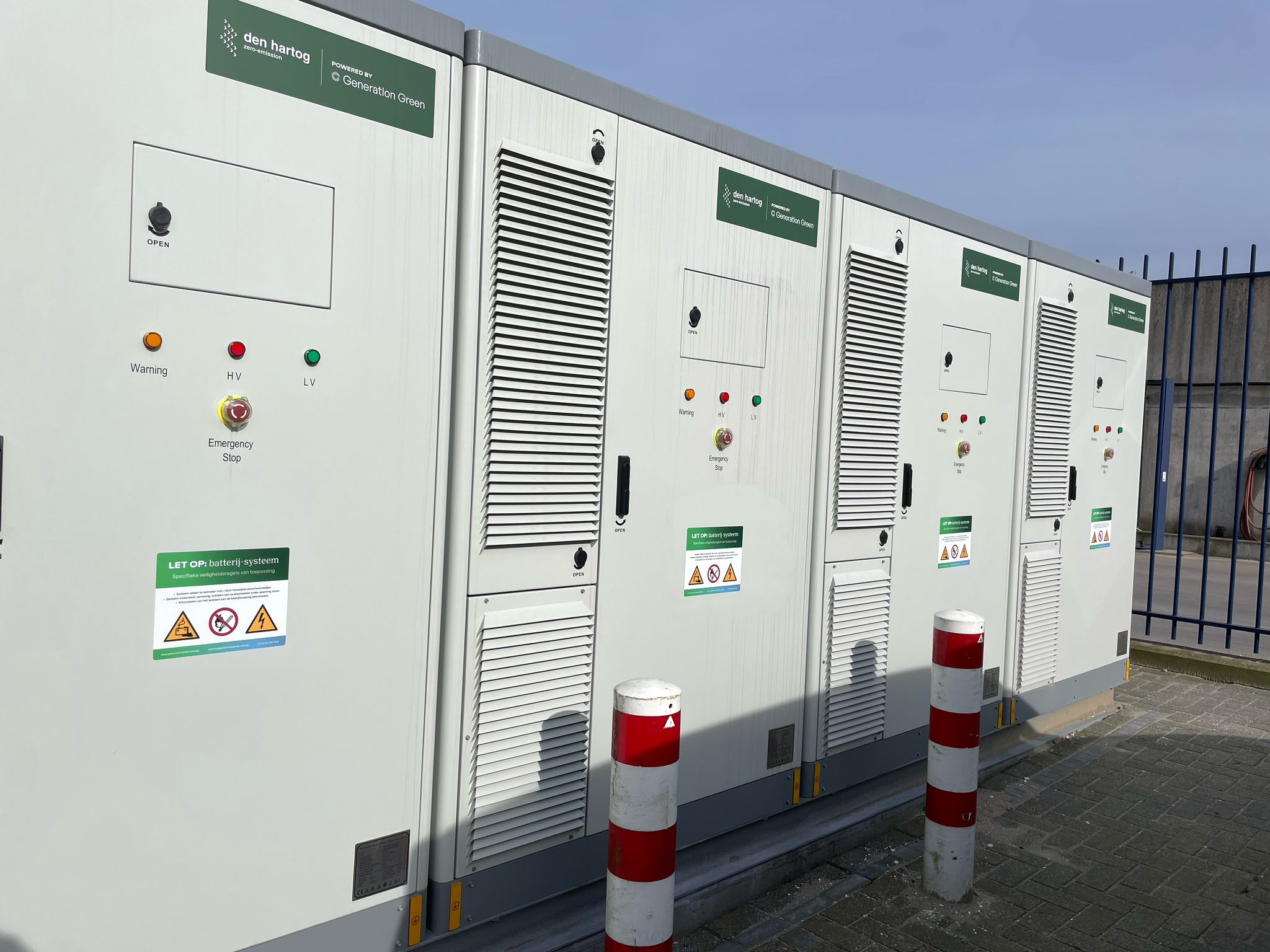 Voor Kruiswijk hebben we een oplossing geïnstalleerd waarmee zij kunnen handelen op de energiemarkt en bijdragen aan het balanceren van energie. Het systeem bestaat uit vier kabinetten met een totaal van 940 kWh (233 kWh per kabinet), en heeft een vermogen van 440 kW.