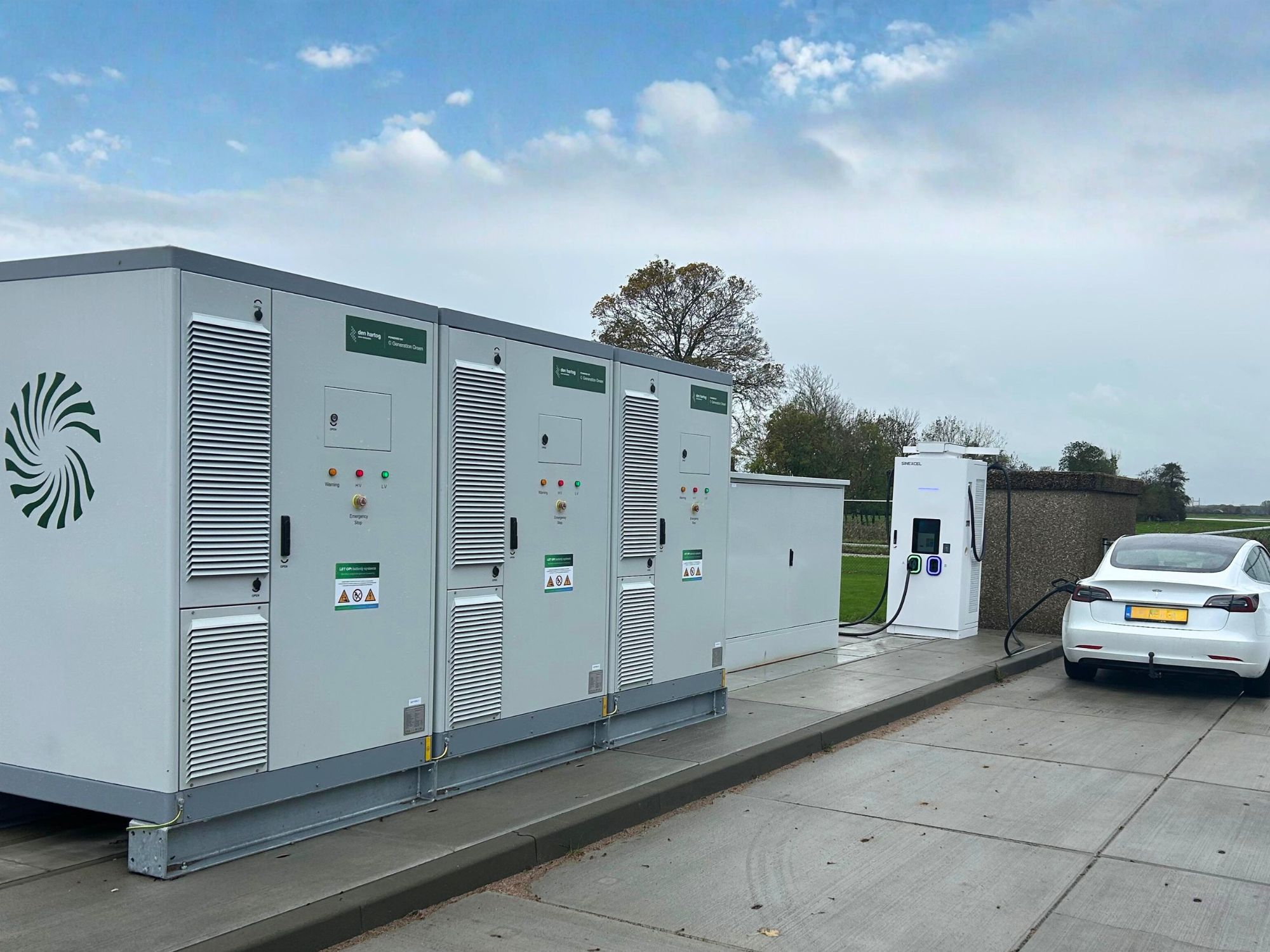 In opdracht van Den Hartog Charging plaatsten we een batterijsysteem van 3x 233 kWh batterijen op het terrein van Visscher Grondverzet in Mastenbroek.
